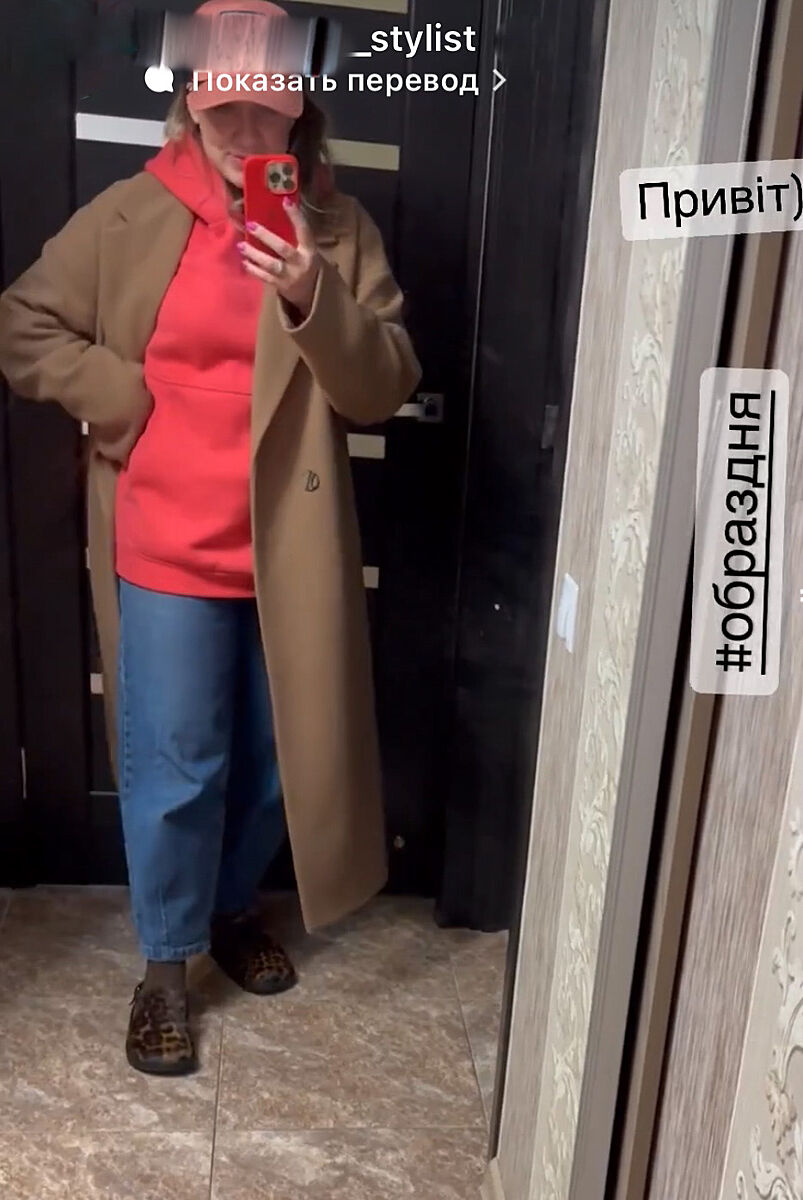 Все не вяжется между собой. Пальто не к этим джинсам и не к этой обуви, слишком длинное вообще для фигуры «модели». Обувь - ни к чему. Про кепку промолчу.