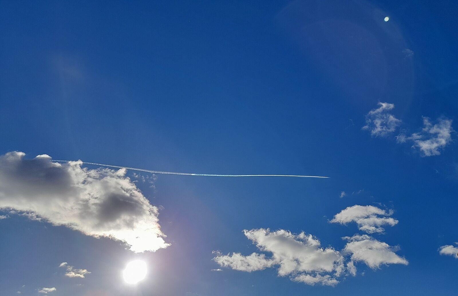 Полосы в небе появляются когда самолёт переходит в сверхзвуковой режим. Если он не прямо над землёй, звука не слышно. Такие Полосы обычно более высоко в небе, они тонкие и из долго видно. Полосы от пуска ракет только от калибров или С-300, но они короткие, и низко на землёй и быстро растворяются. Просто у страха глаза велики и люди долумывабт то чего нету.