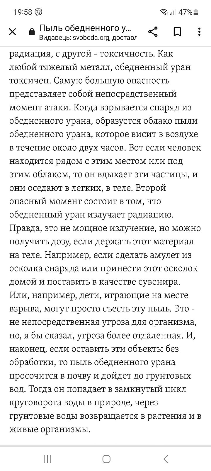 Щодо ’не опасен’ - практика показує геть протилежне. Солдати НАТО, що використовували дані боєприпаси, згодом набагато частіше хворіли на онкогематологію, ніж ті солдати, що з цією зброєю не контактували.