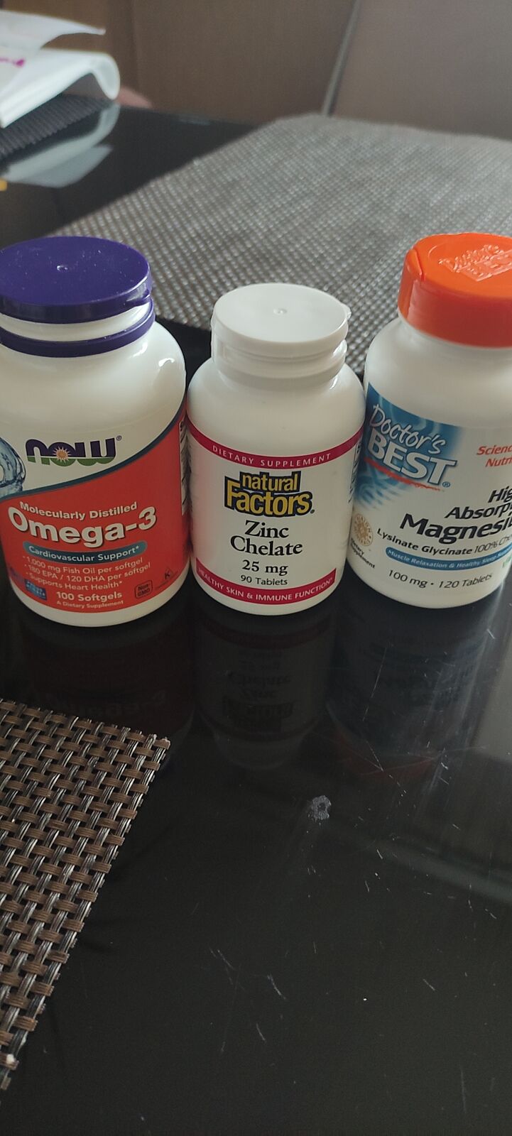 Омегу і цинк треба пити окремо. Або після сніданку або після обіду. Який прийом їжи більш калорійний - після того цинк. Бо після нього може нудити. Вас не нудить?