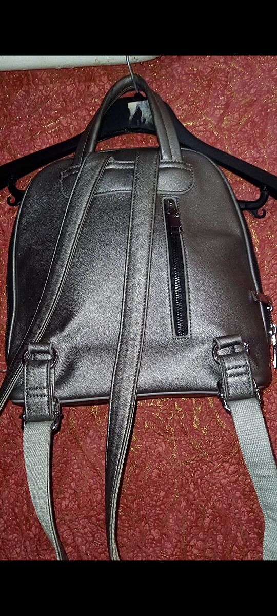 Віддам рюкзачок срібного кольору, носила дитина підліток, трохи є подряпини (скоріш за все кіт приклав свою дизайнерську лапу), треба замінити собачку у основному відділі, або якось поремонтувати замок, бо блискавка іноді розходиться. Якість гарна, підкладка ціла.