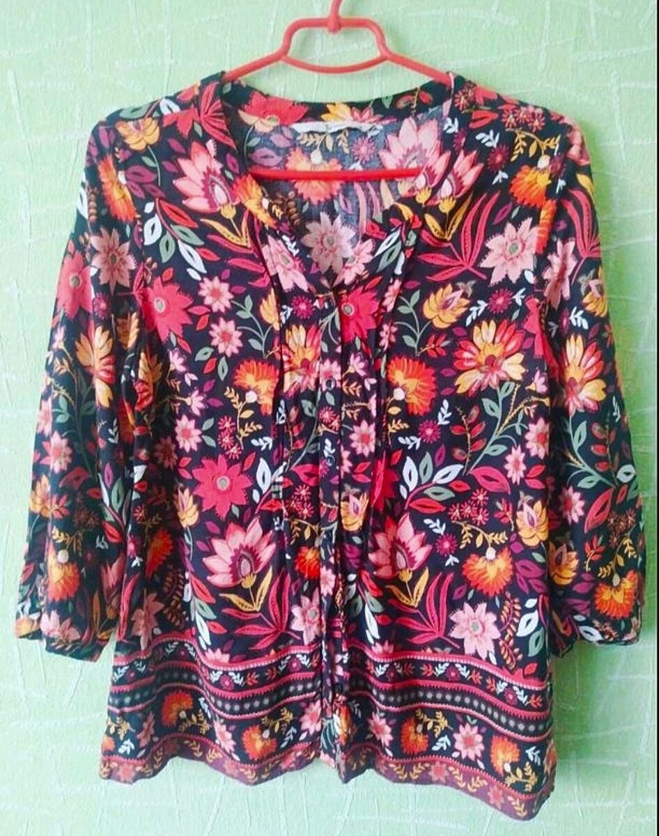 Віддам. Яскрава літня блузочка, приємна на дотик, 100% віскоза, рукав 3/4, розмір S - M. Ширина в грудях 47см, довжина 64см, довжина рукава 48см.