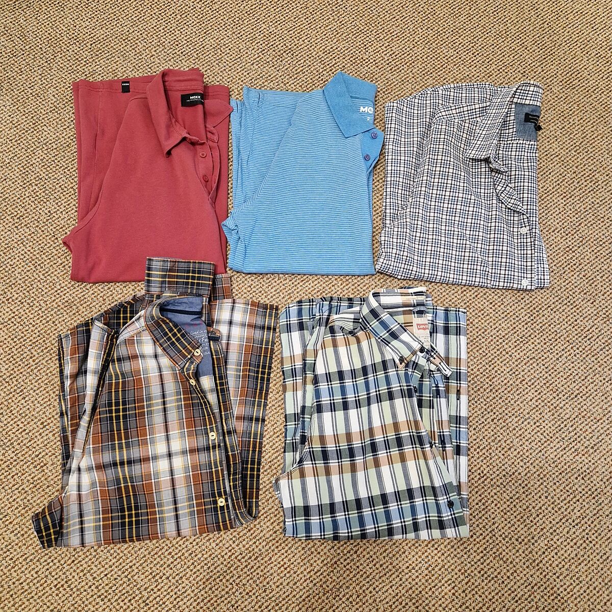 Перші дві теніски, третя теніска з коротким рукавом, дві нижні сорочки з довгим рукавом.