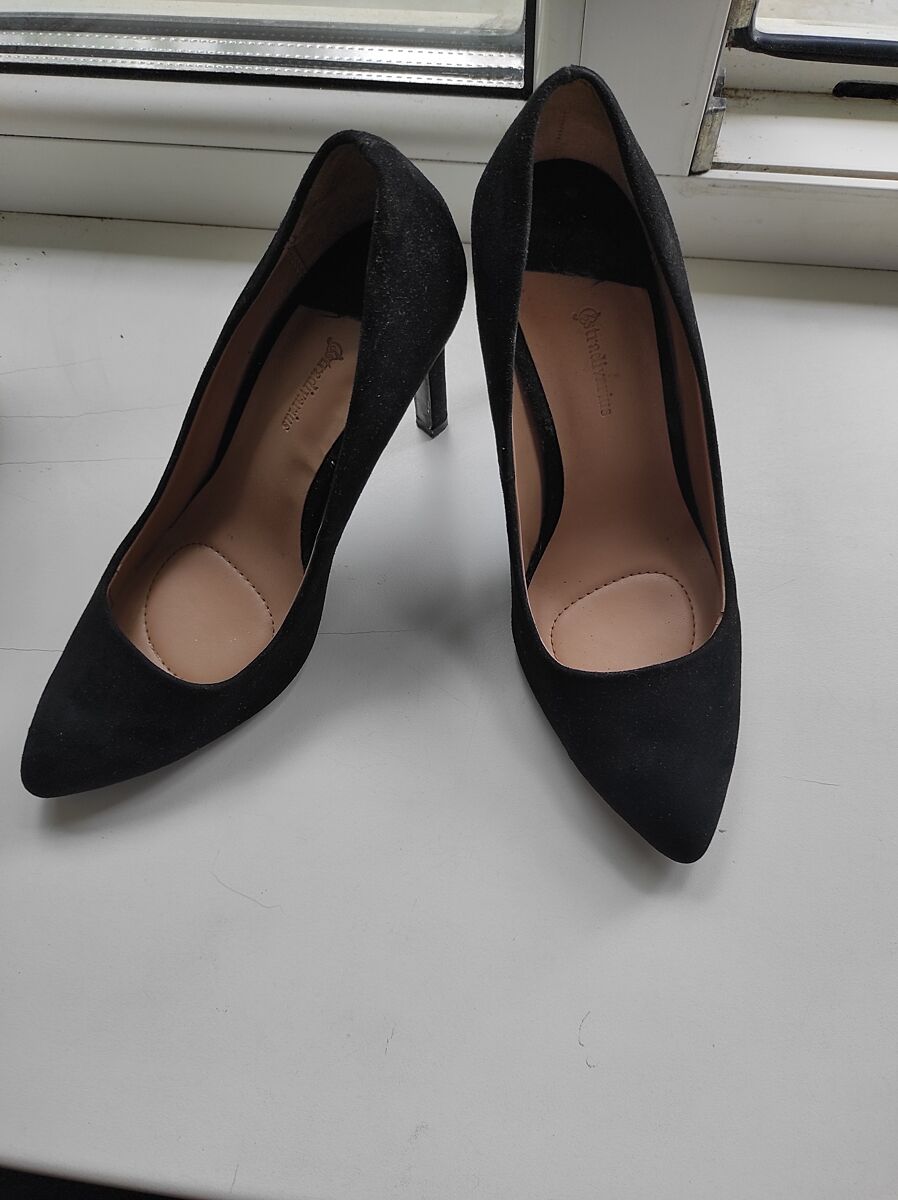 продам за вашу цену: Stuart Weitzman 8 USA черные, кожа+замш+ткань, (замер стельки по запросу, думаю 25 см).