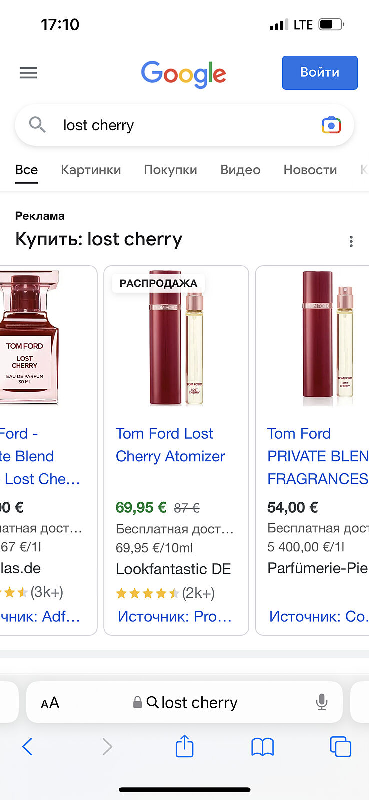Порадувала себе кохану, називається. Вислали підробку Tom Ford Lost Cherry. Перед цим був маленький відливант, подруга подарувала, вони так солодко пахнули, соковита солодка вишня, трошки алкогольних нот. А це прийшло щось незрозуміле, гірко-кислий аромат, зовсім не схожий на оригінал, або може зіпсувався відливант поки до мене доїхав, незнаю.