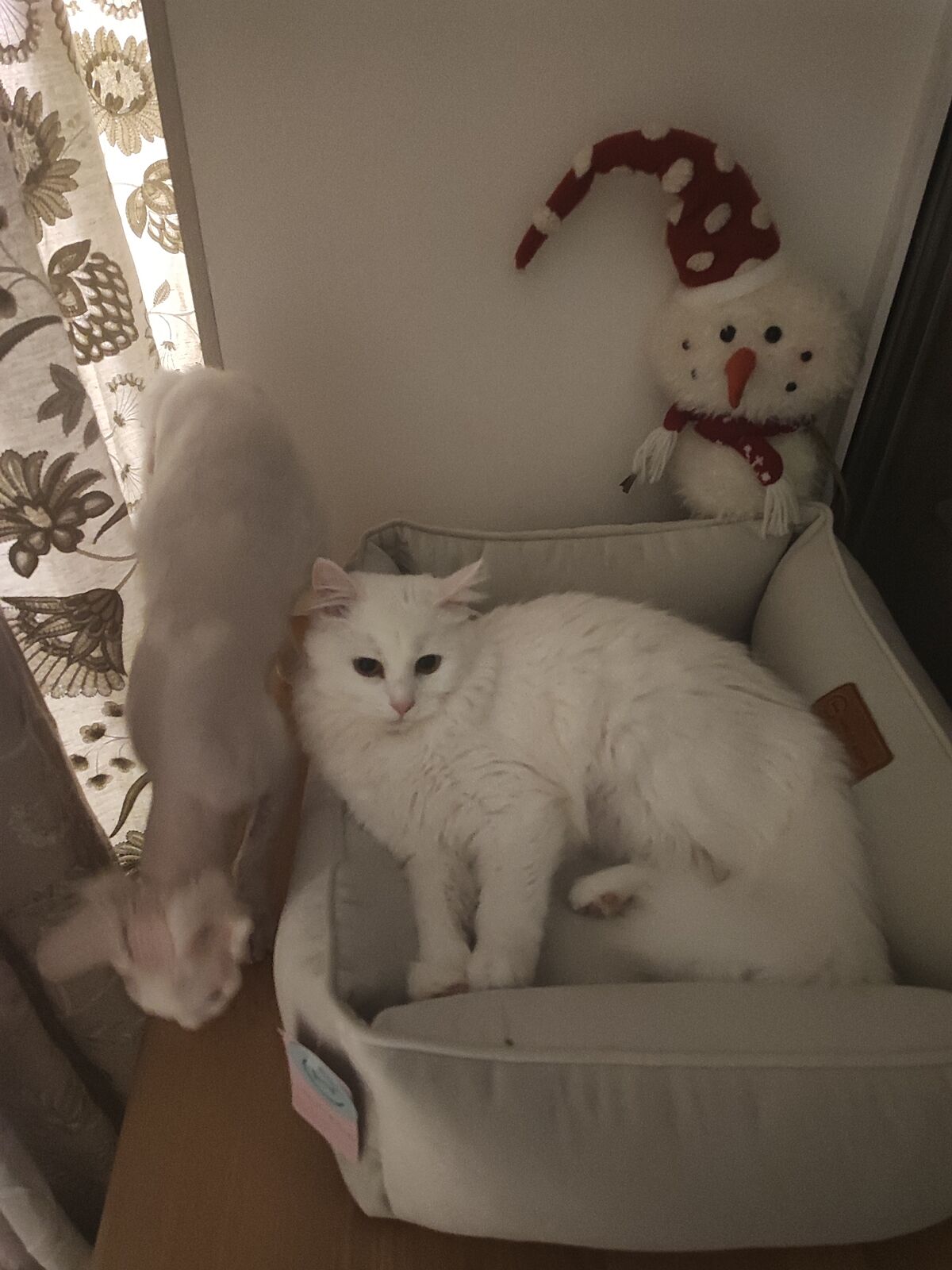 Малая перетащила лежанку к себе на подоконник, я пока курила, они обустроились)