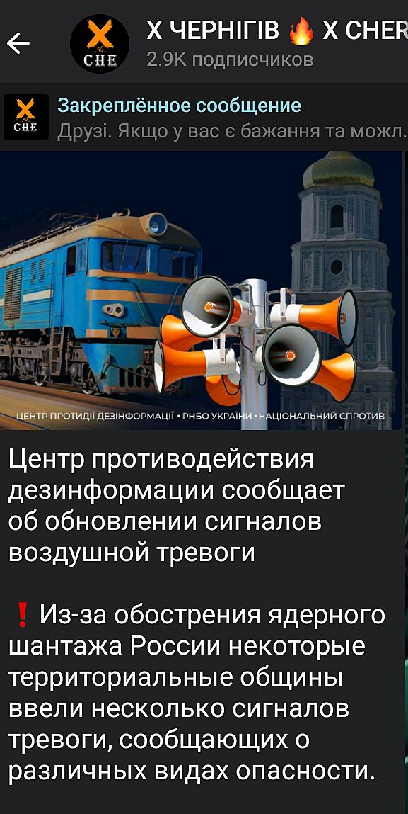 Да, 100% в Чернигове сегодня была не как обычно. Мне друзья тоже стали писать, испугались угрозы ЯО.