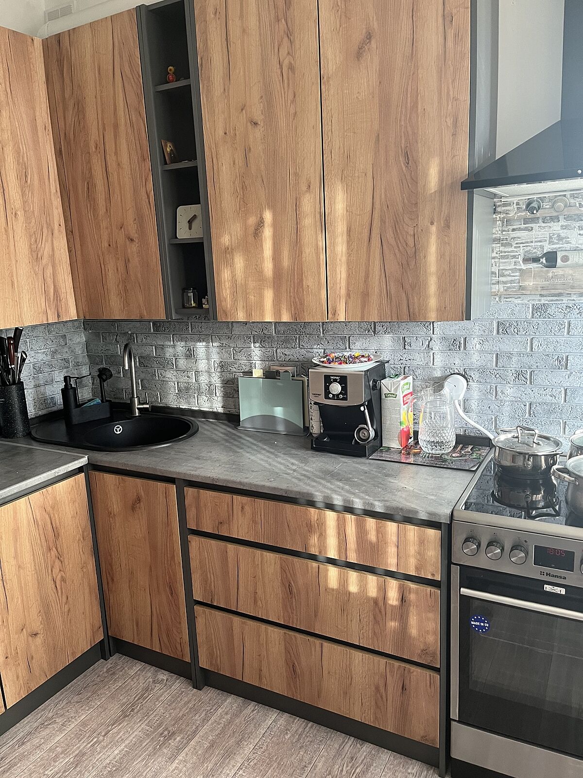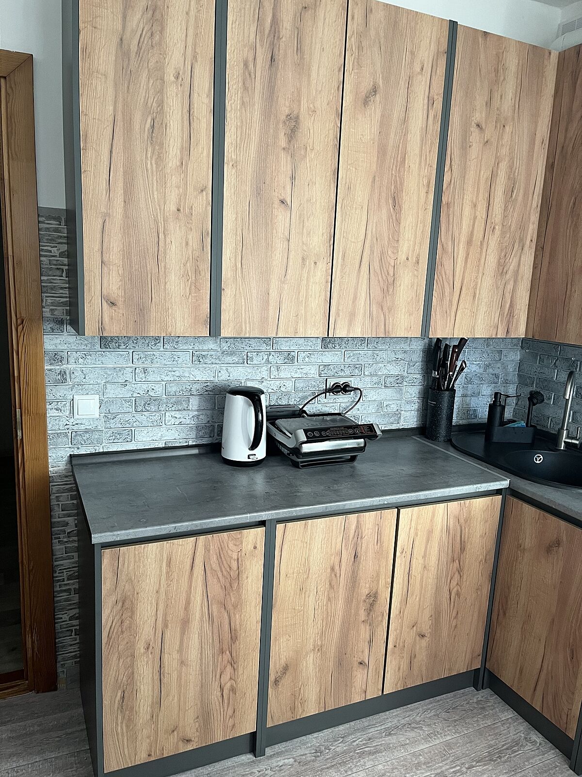 Один нюанс - там де двері йдуть в сторону духовки (по середині самих тумб у нас електрична духовка) , то почало облазити від пару що виходить з духовки. 😒