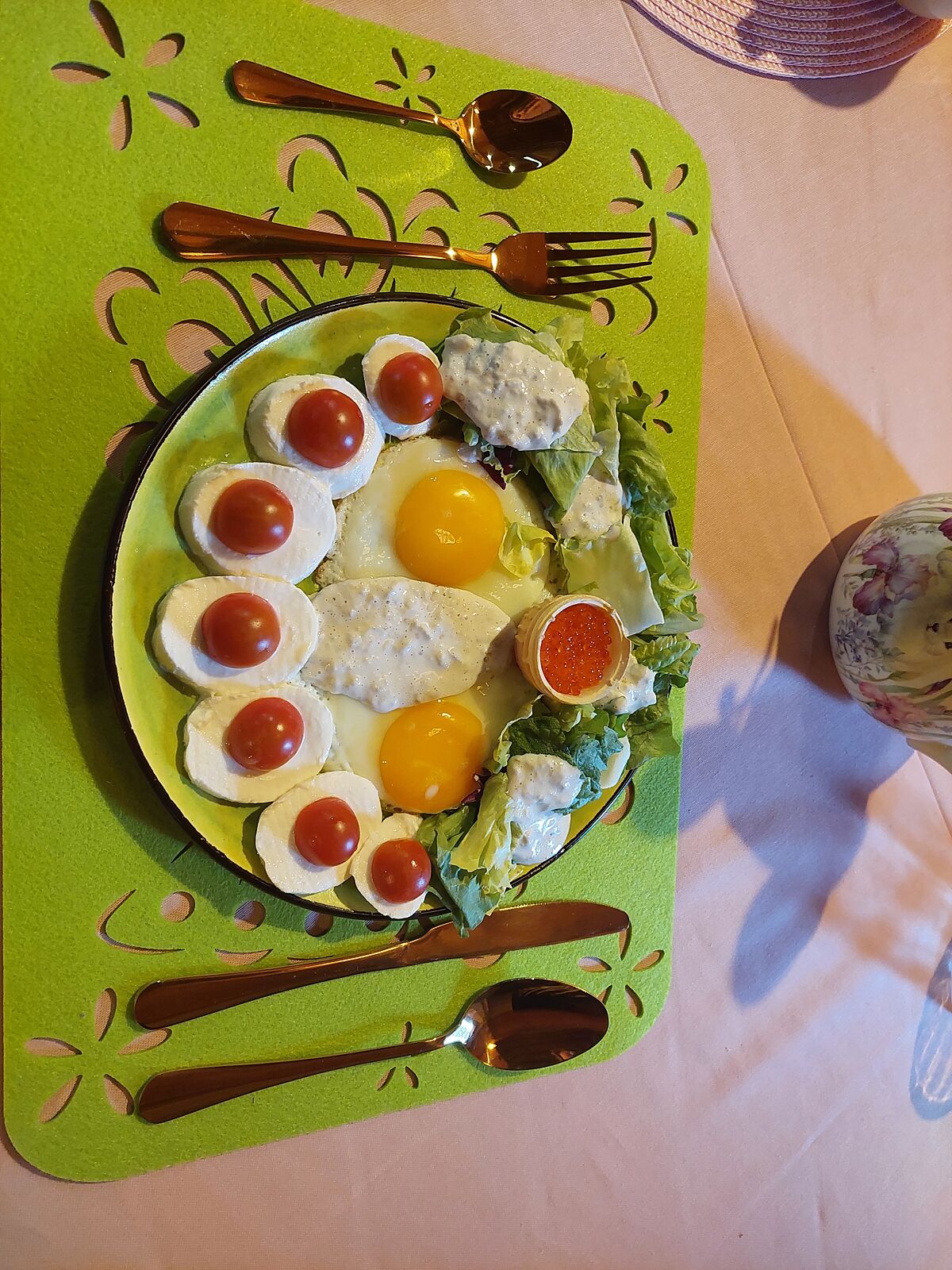 2 яйця, 1чл вершкового масла (для жарки), сардинки маленькі 2шт, грейпфрут великий.