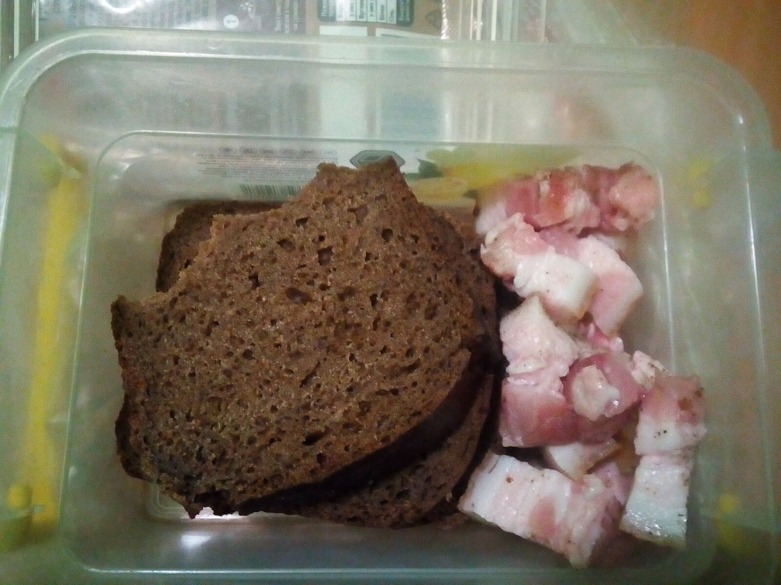 Да, мое любимое- черный хлеб со смальцем и солью. И сладкий чай.