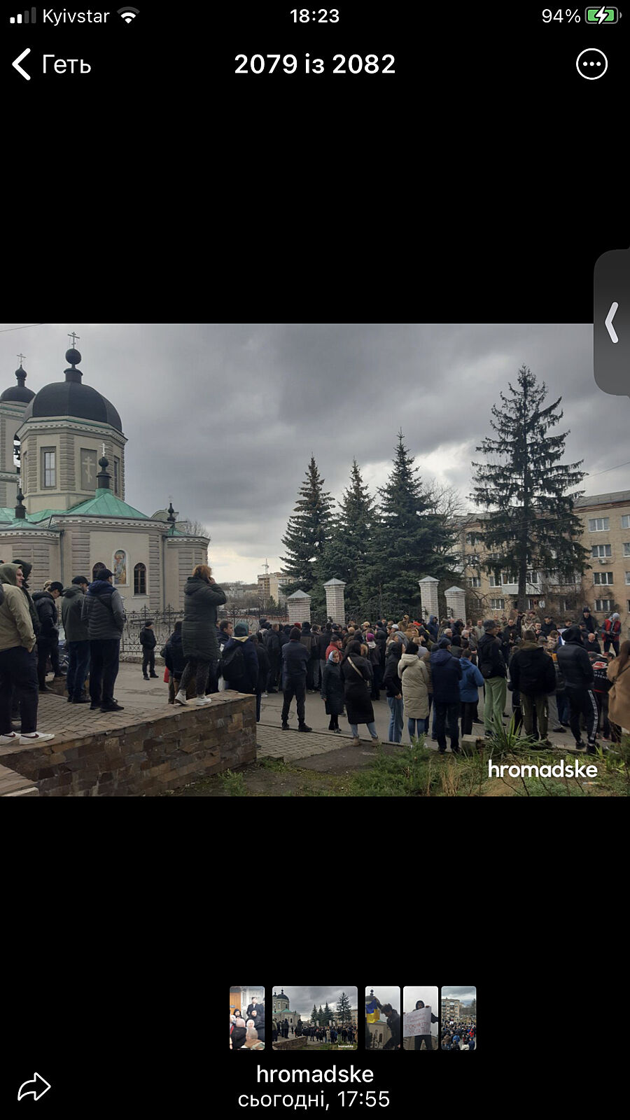 У Хмельницькому біля храму УПЦ МП, де побили військового, зібралося близько 500 людей. Серед натовпу десятки поліцейських. Також присутні 20 військових, зокрема із бригади, де служив постраждалий військовий. Люди проломили ворота, зайшли на територію храму та вигукують: «Геть московського попа»