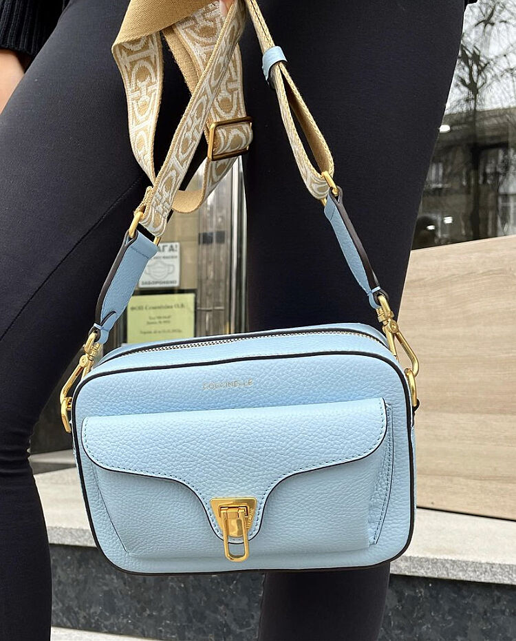 Дівчата, не так давно питала за сумку. Порадили більшість Coccinelle. Дякую. Залишився останній мазок - вибрати ремінець. Є звичайний тонкий, а є тканинний. Знайшла на прикладі блакитної сумки. Гляньте, який краще? Буду з бежевих обирати.