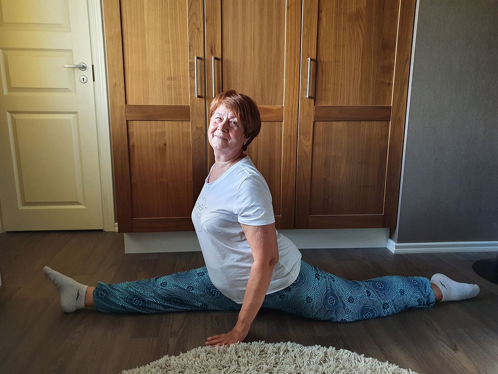 До пола ладонями достаю легко, но, в целом не гибкая. 9-ый месяц хожу на стрейчинг 2-3 раза в неделю, но до шпагата ещё бесконечно далеко. Думаю пару лет потратить надо.