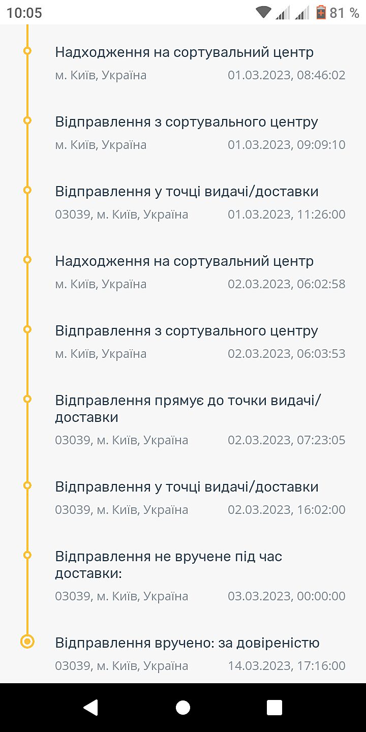 Зайшла провірити інформацію про відправлення, виявляється по цьому номеру ттн посилка вже вручена, вірніше лист?????