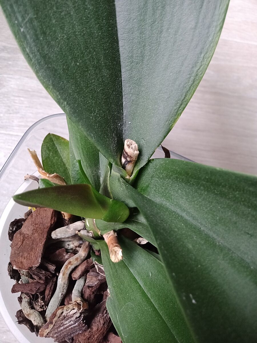 Орха с уветоносом из точки роста поэтому и боковой отросток дала. У меня 2 такие же, обычная и мини. Так и ростут, не отделяла.
