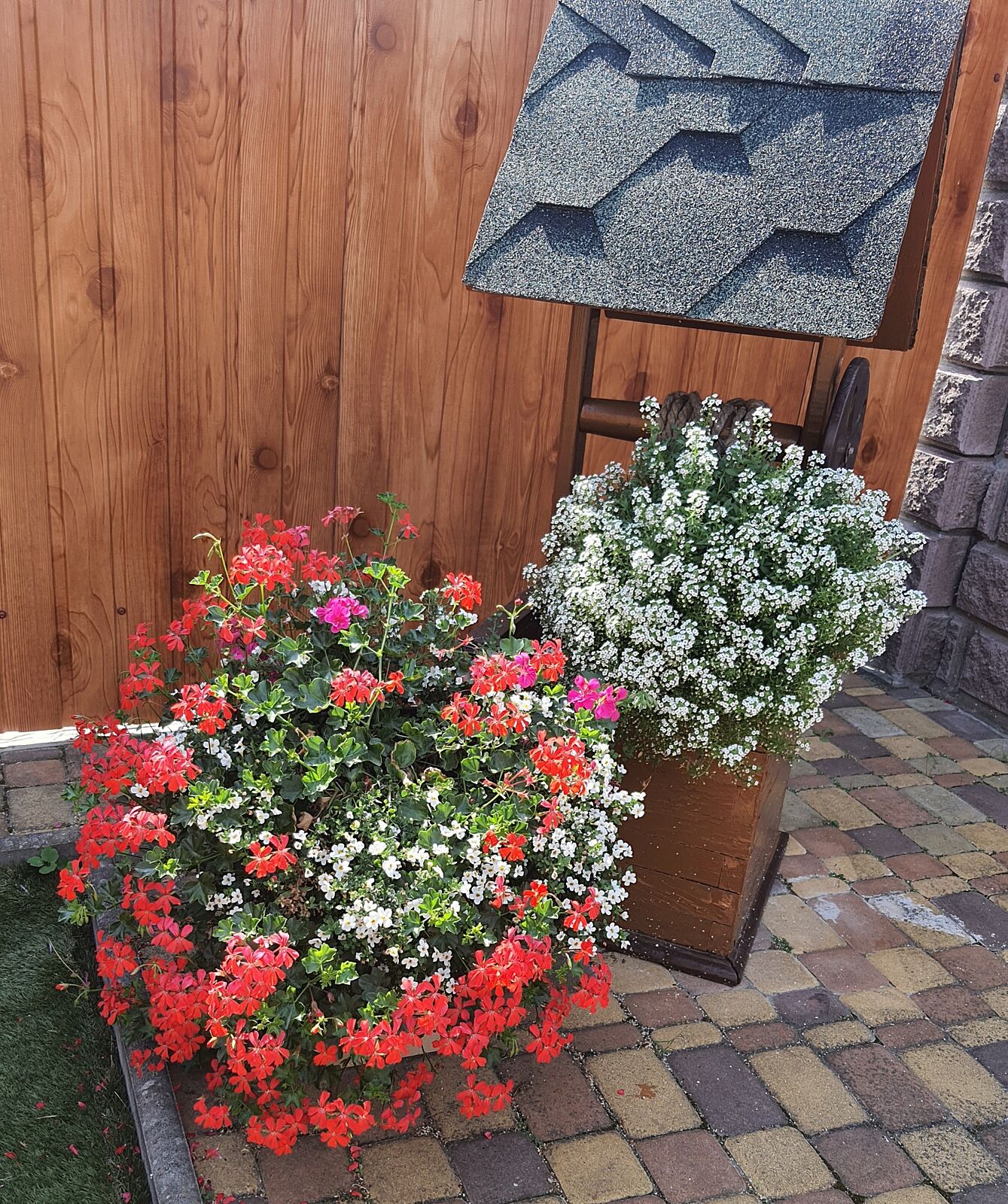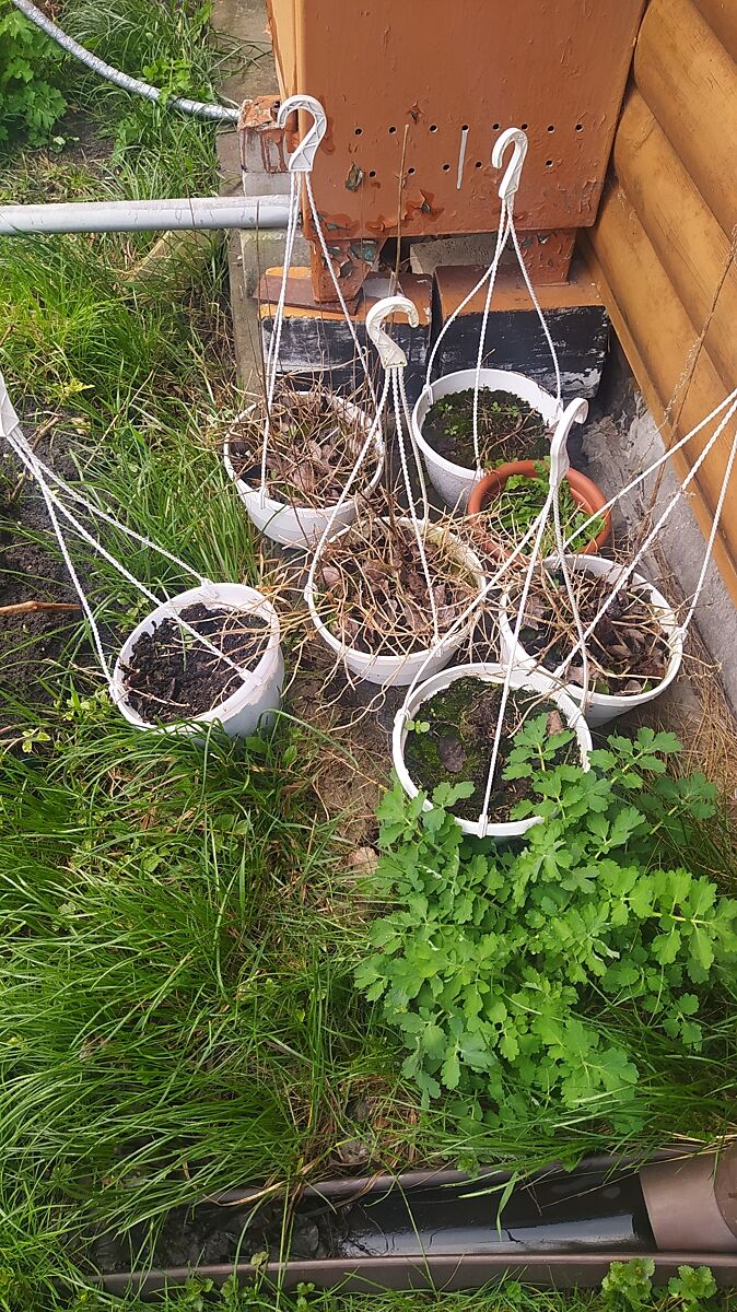 В мене петунії завжди в оцих горшках, звеху на деревах сульфінія, але я не бачила розсади сульфінії( буду, як завжди, купувати нові горшки, дцмала, може є ще щось таке, звисаюче, яке гарно квітне