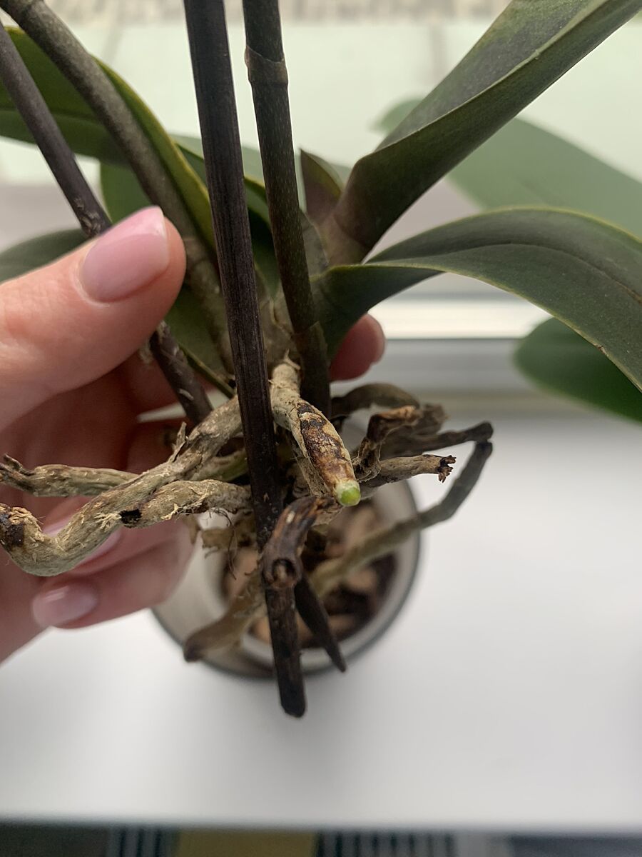 Викинути ярос перед усім. Коріння треба наростити. Це краще зробити у мху. Спеціальний такий для орхідей -сфагнум.