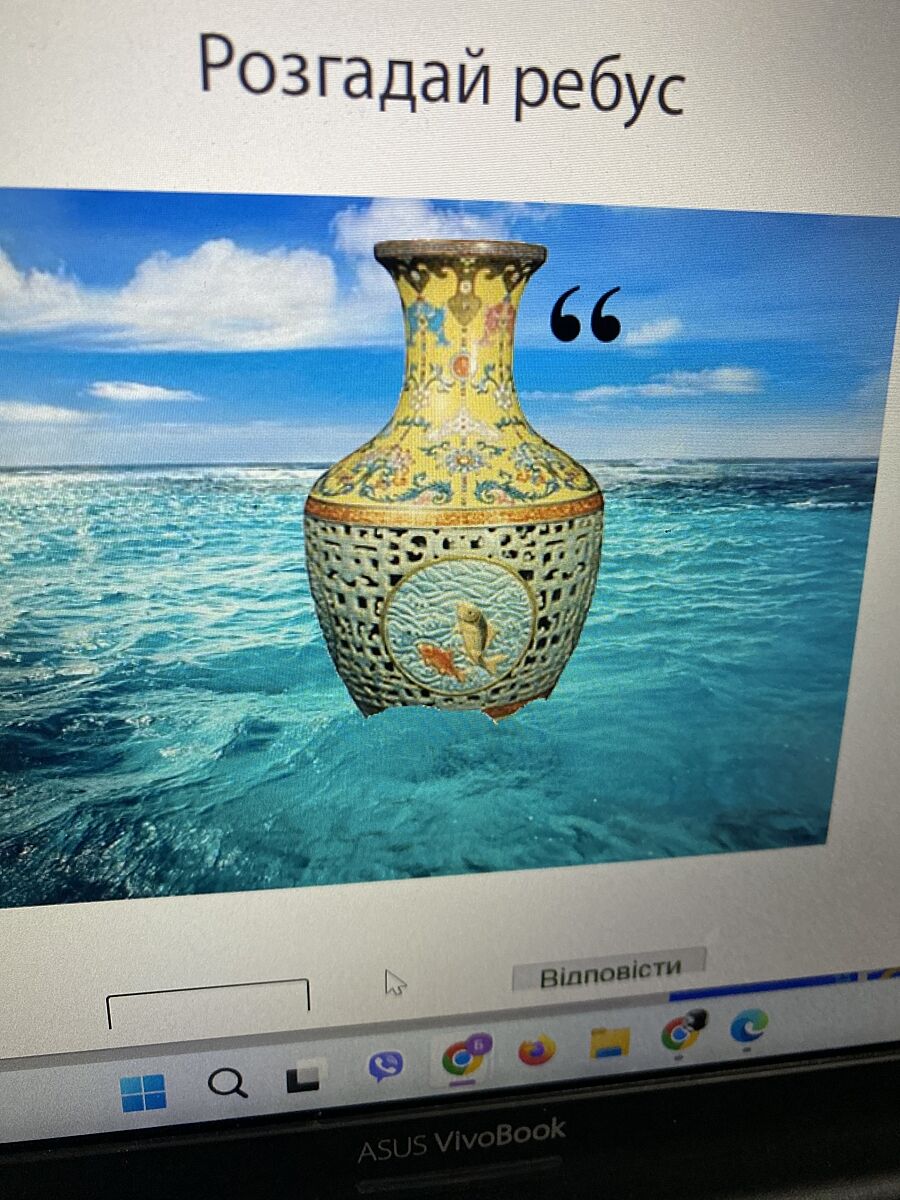 Ваза в морі - виходить мовазаре. Відкидаємо дві останні з вази - ВА. Виходить моваре. Знов відкидаємо дві останні - МОВА.