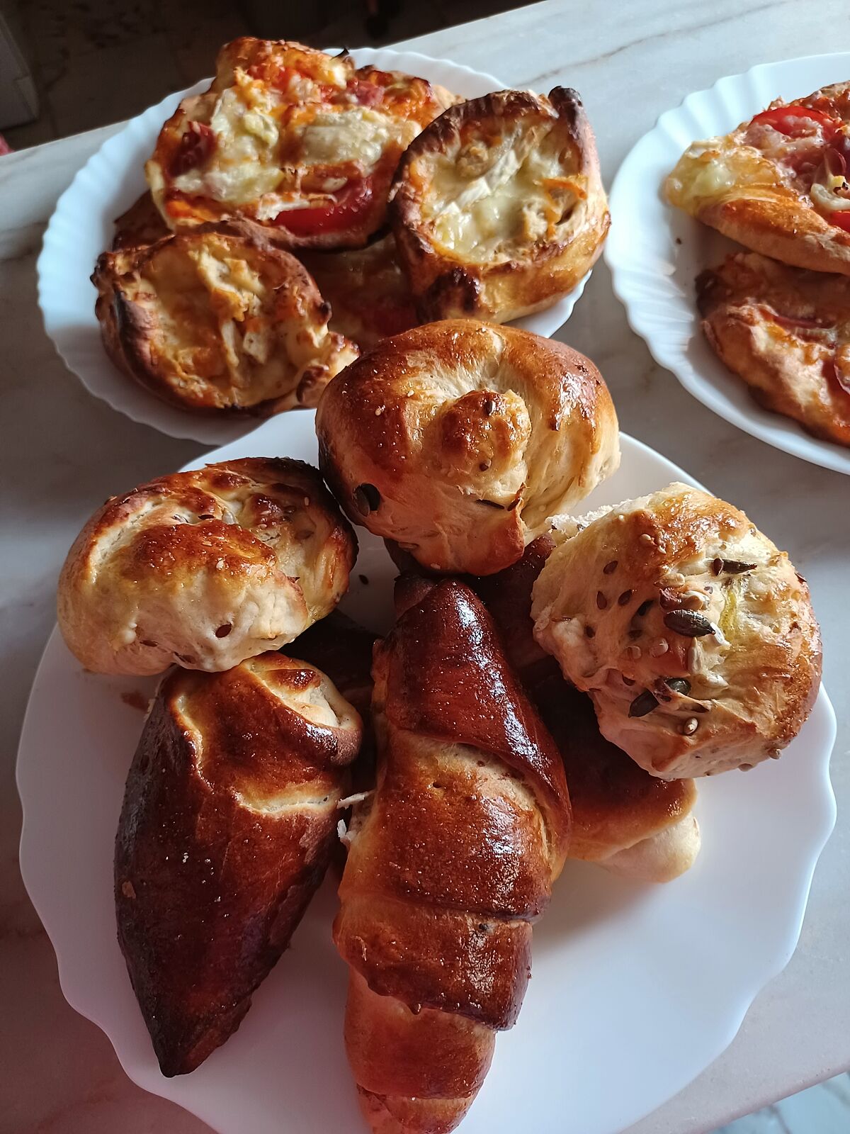 Накрутила рогаликов с сахаром и корицей , и булочек с семечками из оставшегося теста.