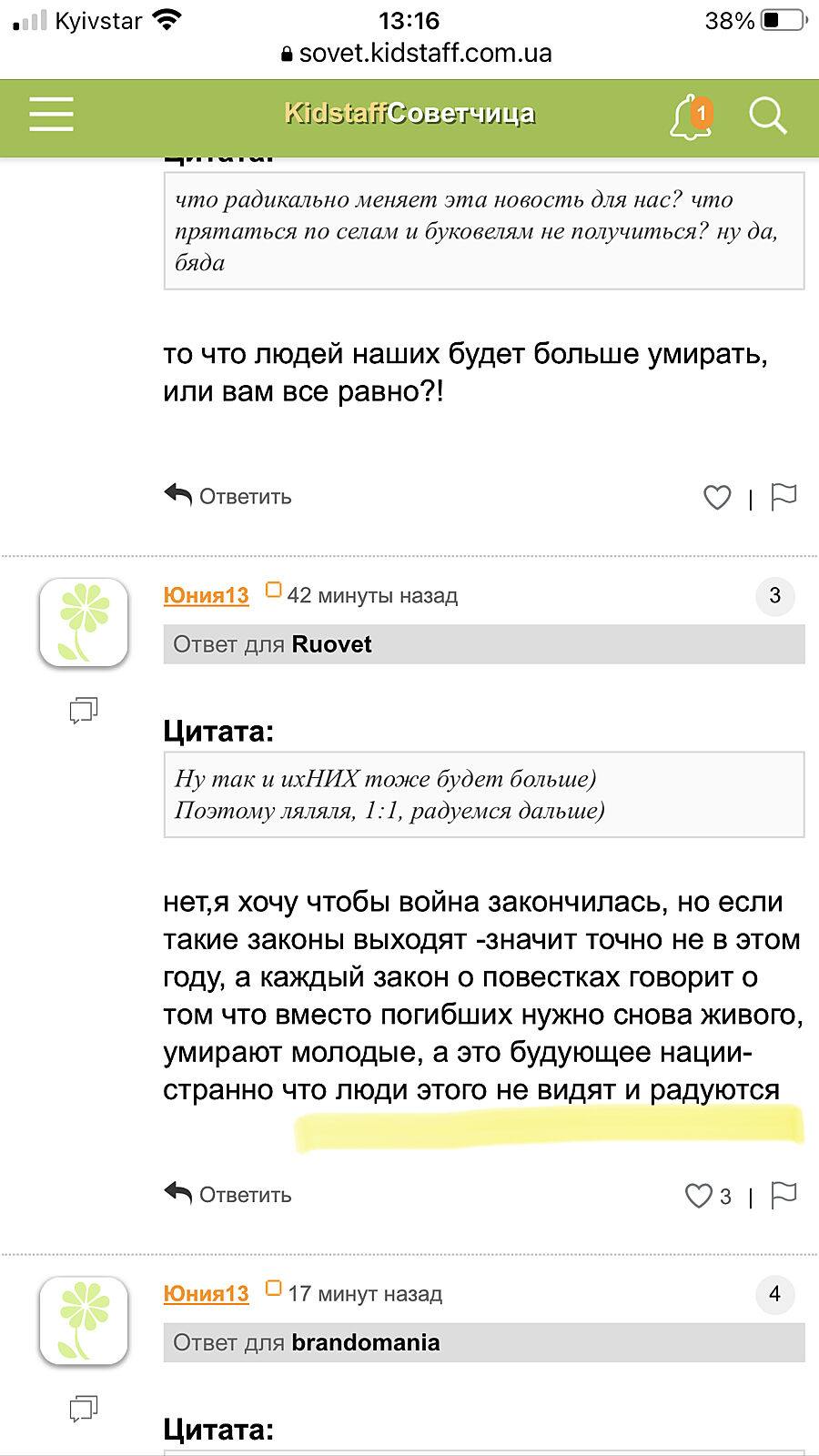 так пост 428 это норма?я вам уже третий раз пишу,зачем вы лампочку включаете))) что ничего не понимаете,я же с ней общялась, ну четко же человек пишет ’ЛЯЛЯЛЯ 1:1 РАДУЕМСЯ дальше’ перед этим я писала,что наших людей много умирает-и каждая повестка это замена живому