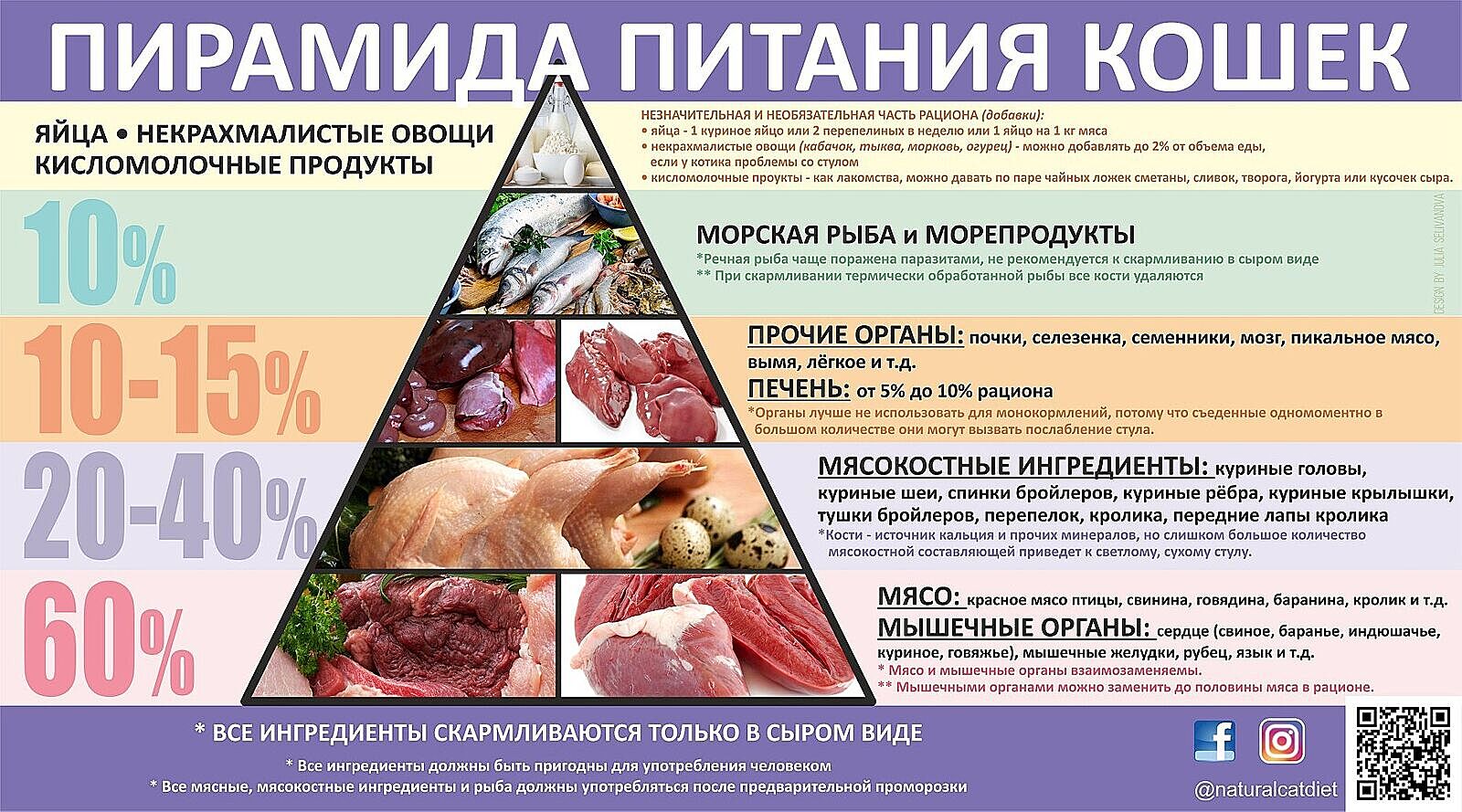 40% мясо, 10% субпродукты, 25 % цельнозерновые злаки, 25% овощи. Я добавляла что было под рукой, и морковь и свеклу, и брокколи, и цветную капусту. Запрещено лук, чеснок и не желательно картофель