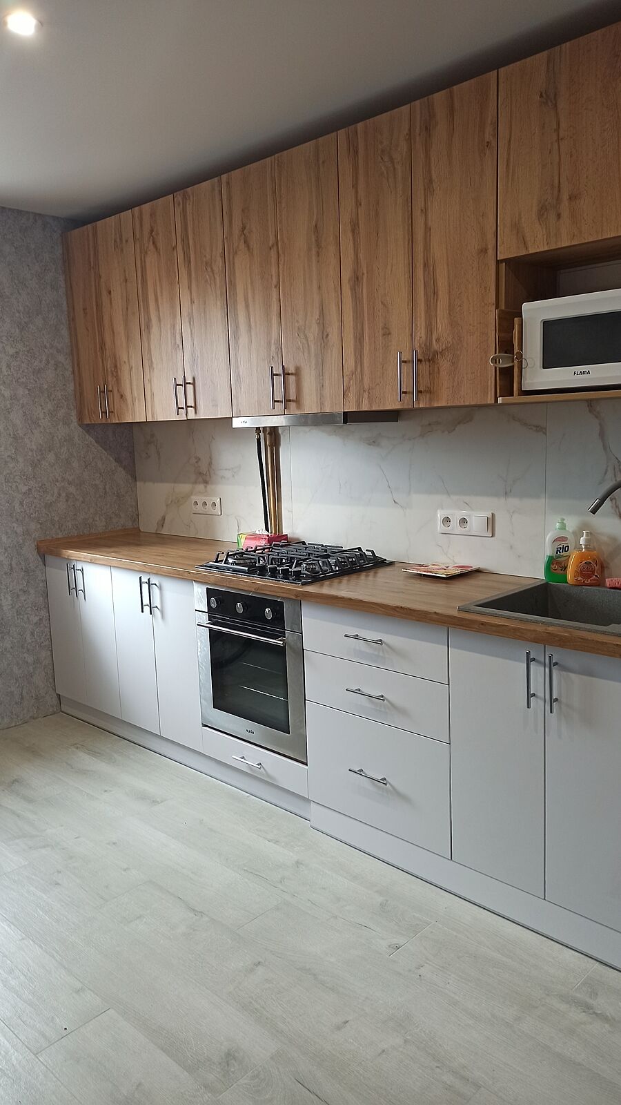 У нас дешевая кухня от фабрики Белой церкви, уже 15 лет-ничего особо страшного с ней не произошло, да, хотелось бы поменять на более современную, но пока подождем, в связи с войной не понятно что дальше будет.