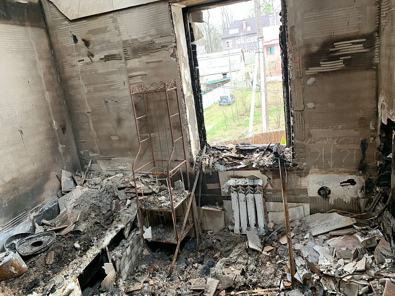 Второй этаж и крыша, чердак все сгорело. Только стены. Очистили, сделали новый чердак и крышу, вставили окна и уехали. Коммуникации, трубы, электрика - все расплавилось. Ремонтировать сейчас не хотим. Дом законсервирован. Вот так это было. Но хорошо, хоть из дома выбрались и из оккупации тоже.