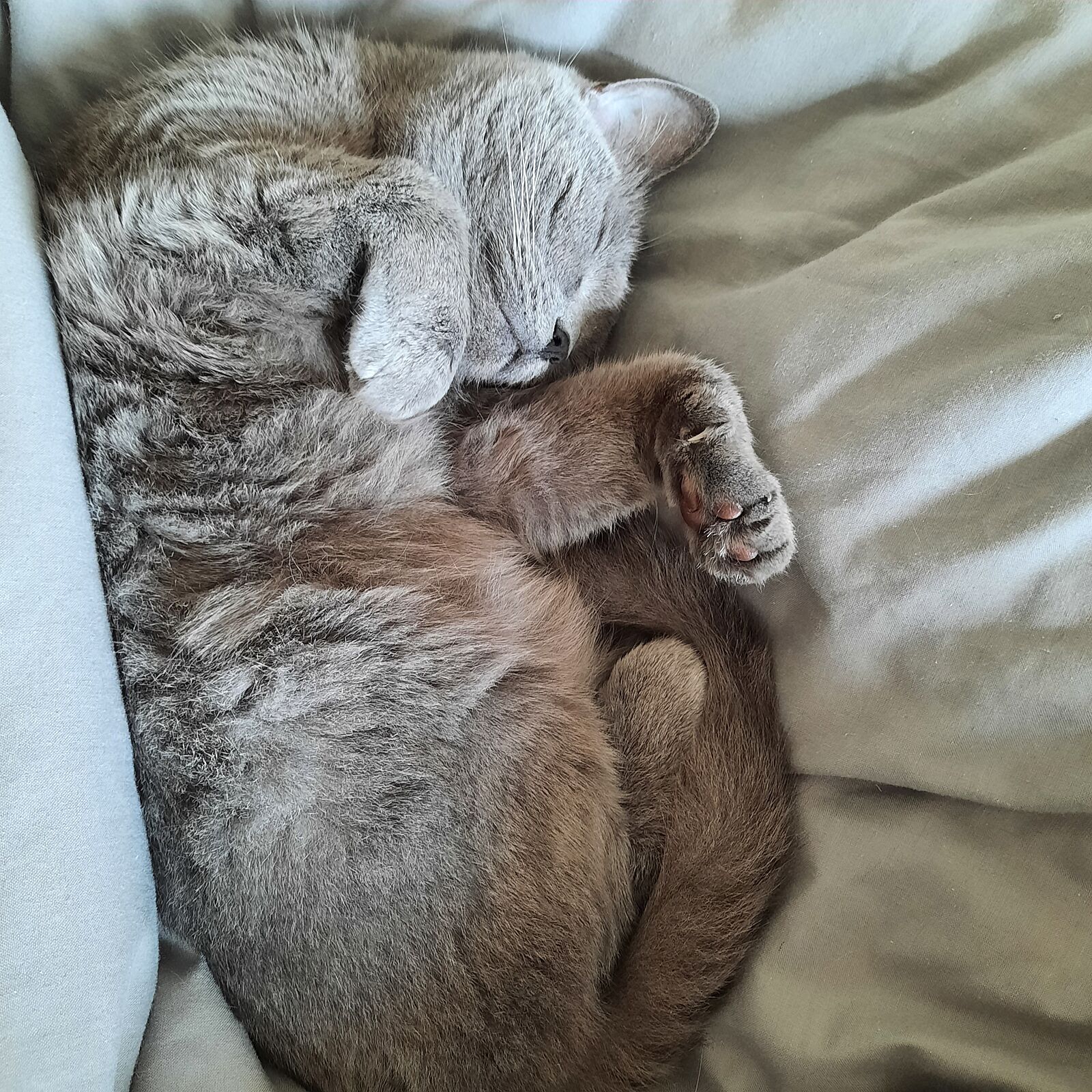 После событий в Ирпене стал очень ласковый. До этого был кот, который сам по себе и смотрит на всех с презрением). Зато сейчас мурчит, трется, спит с нами иногда ( никогда этого не делал, только принципиально в своей лежанке) и даже встречает у двери вместе с нашей собакой.