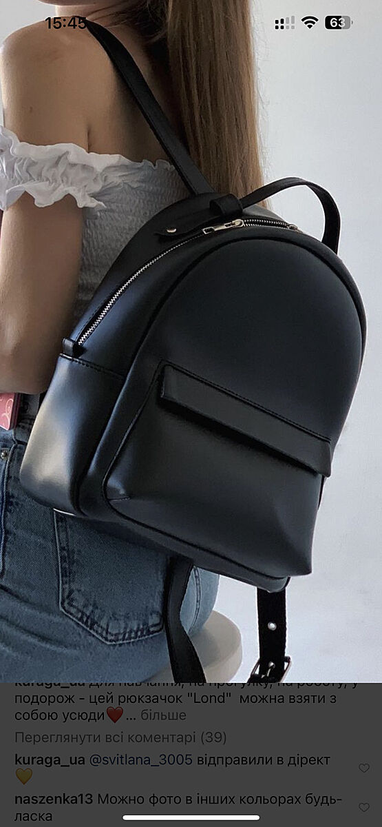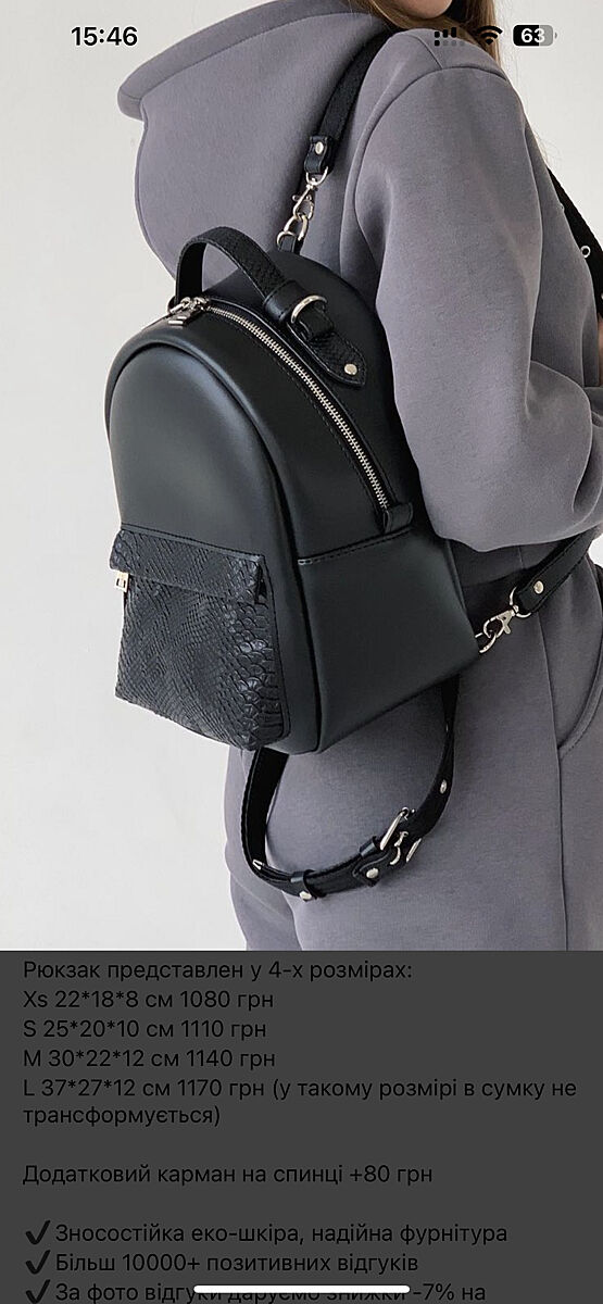 В мене телефон дуже погано фотографує речі чорного кольору. Цей рюкзак зручний і вживу виглядає як класичний маленький рюкзак з хорошого текстилю. Купувала дуже давно і не знаю що зараз з цим брендом. Називається Bagland