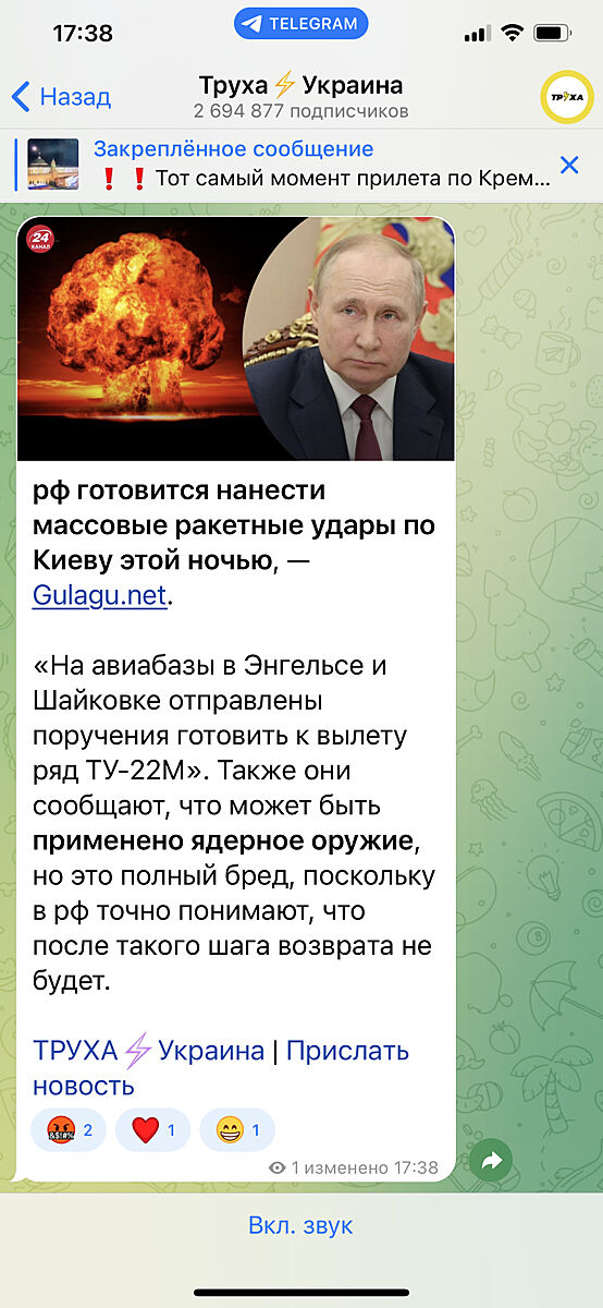 И что-то мне подсказывает, что они сами себя атаковали, от страха нашего контранступления, чтобы якобы «в ответ» в очередной раз разрушить наши города и убить наших людей, запугать. Чем больше они проигрывают на поле боя, тем больше ракет на нас запускают. Твари, как же надоело это все