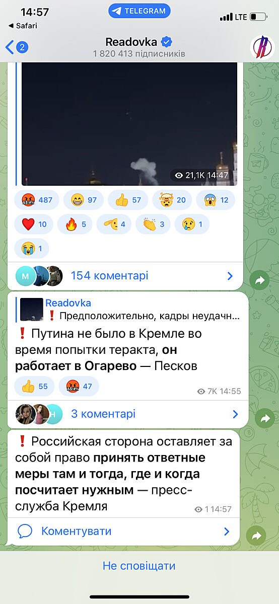 Не фейк, руснявий канал вже пʼять постів накатав за півгодини