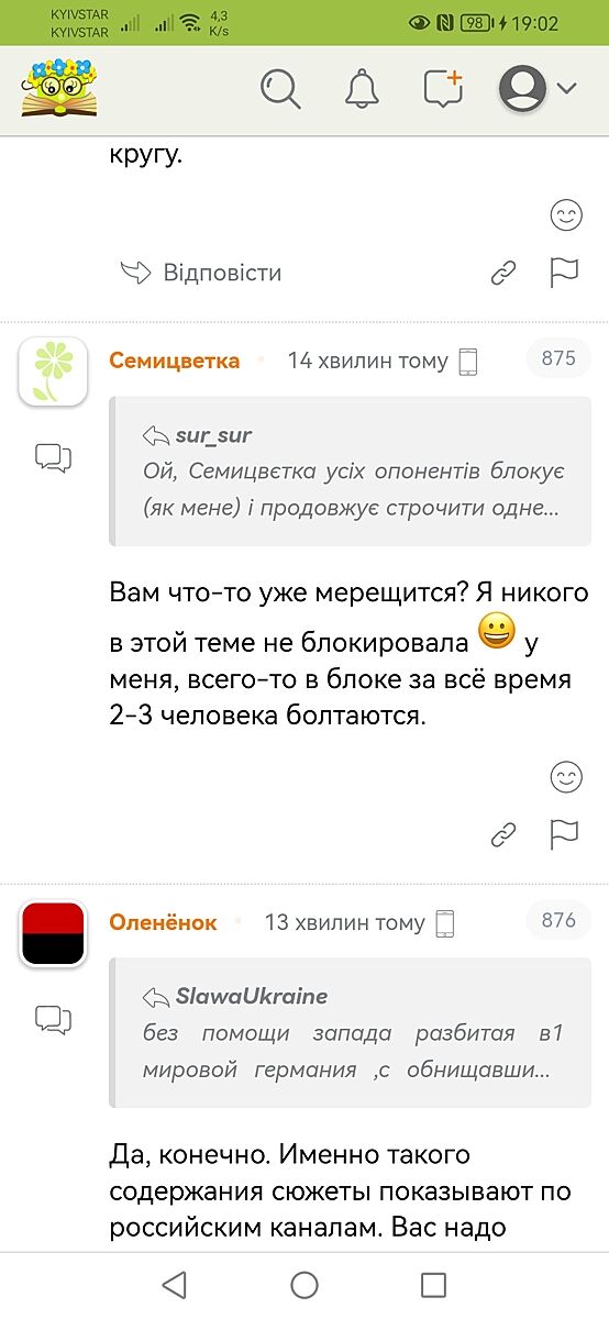 Ой, Семицвєтка усіх опонентів блокує (як мене) і продовжує строчити одне й те саме😂