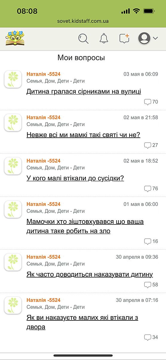 Вот был ряд тем от одного и того же пользователя, и везде про наказание ребенка, шлепать по попе и тд: