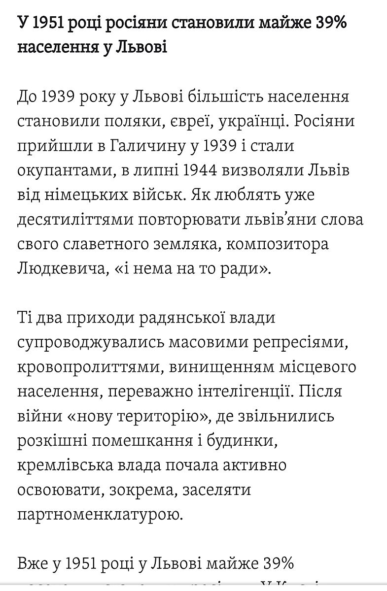 ’У 1951 році росіяни становили майже 39% населення у Львові