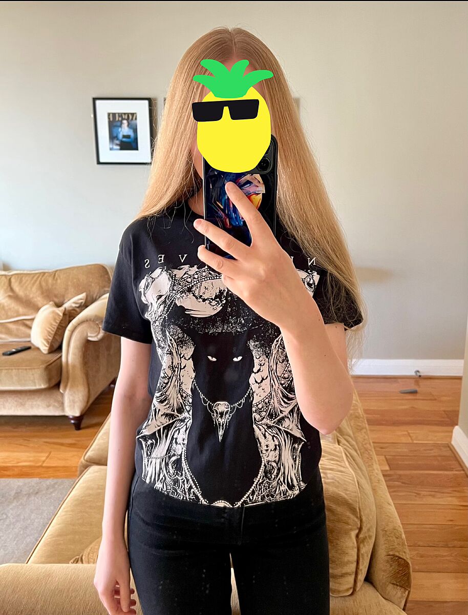 В мене немає фото, я рідко фотографуюсь. Хіба що ось, випадково в телефоні зберіглось. Обирала джинсову курточку, хотіла білу, але не було розміру то купила цю. Рукав вкоротила