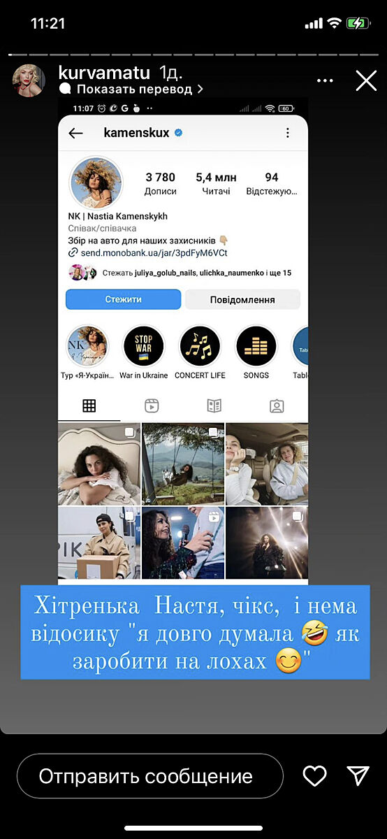 пусть сама на рашистов подписывается - фу слиняли еще и рашистов продвигают. Не пахнут им деньги совсем с потапом