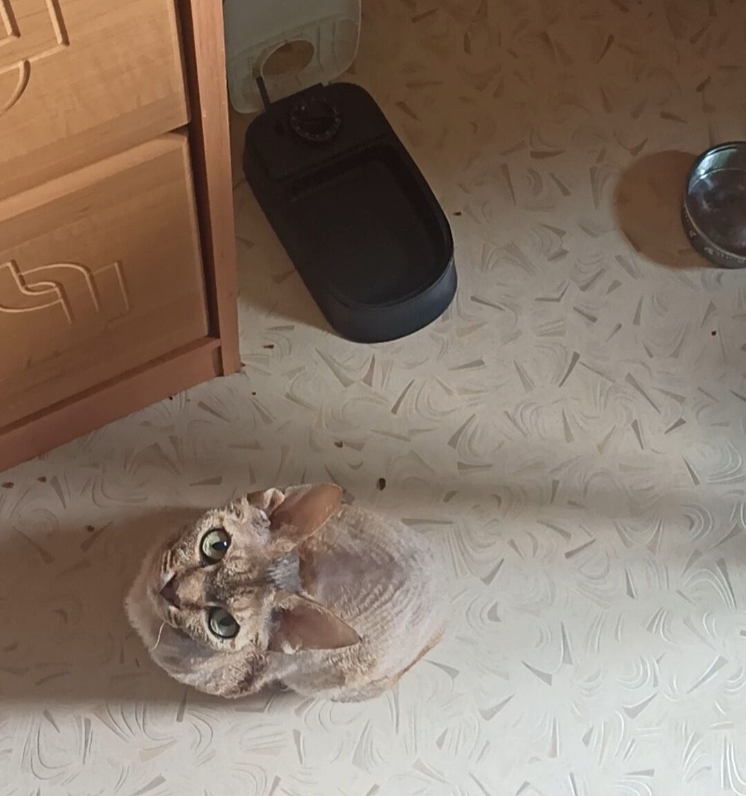 Ждёт корм и вкусняшку в виде палочек пурина