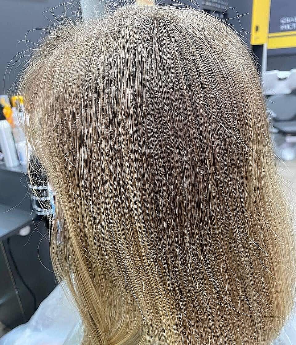 У мене був. Не сподобалось, дуже сухе волосся стало. Дуже гарно виглядає 1,5-2 місяці. Після вже не те і коріння дуже контрастує, оскільки свій тон 7.