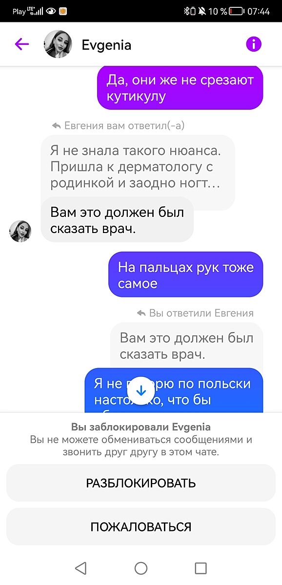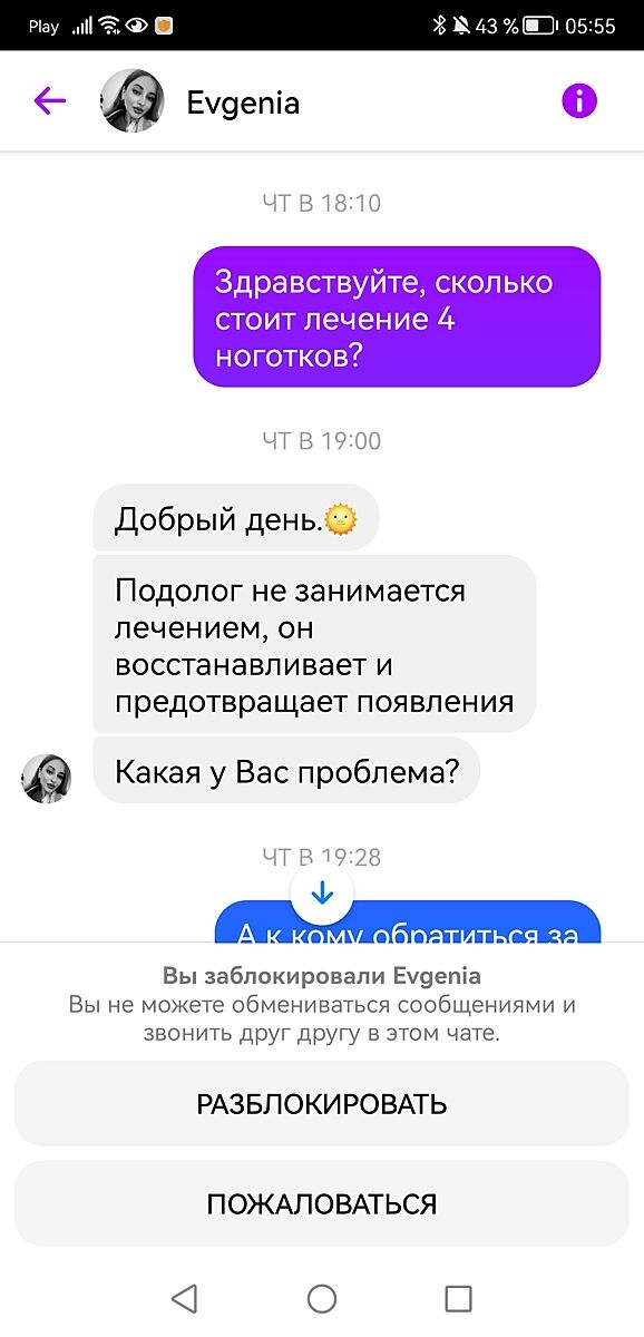 Или вот от общения с подологом у меня аж давление подскочило, я ее заблокировала, а просила просто почистить ногти, убрать поражённые участки без кутикулы.