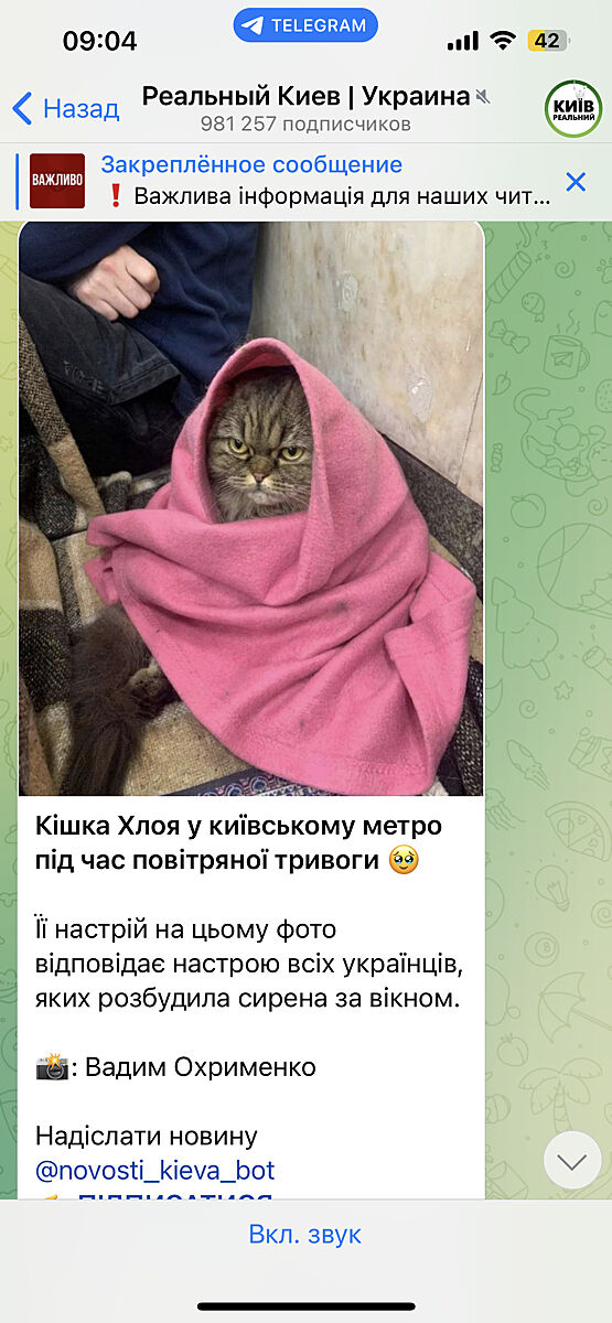 Бачили цю кішечку у метро під час тривоги?)