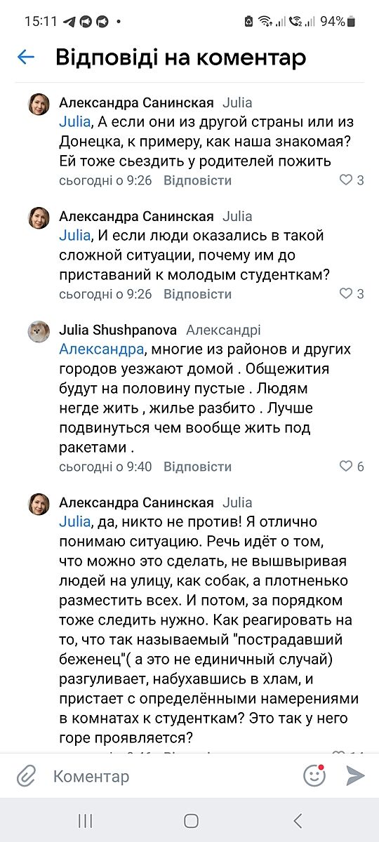 Іноді теж дивуюсь цьому. Наша країна витрачає колосальні суми на війну. От чому переселенцям платять тільки дві тисячі і кожного не забезпечують окремою квартирою? Під час ДСВ для евакуйованих було підселення. Живеш один в трикімнатній квартирі, дві кімнати підуть для біженців. Чи багато цих критиканів згодні у себе поселити хоч одного біженця?