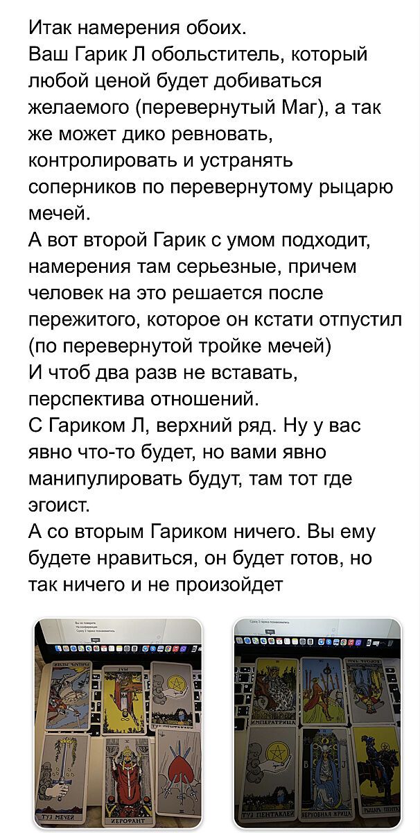 Что у меня будет с Гариком Т? Видящие, таро есть?