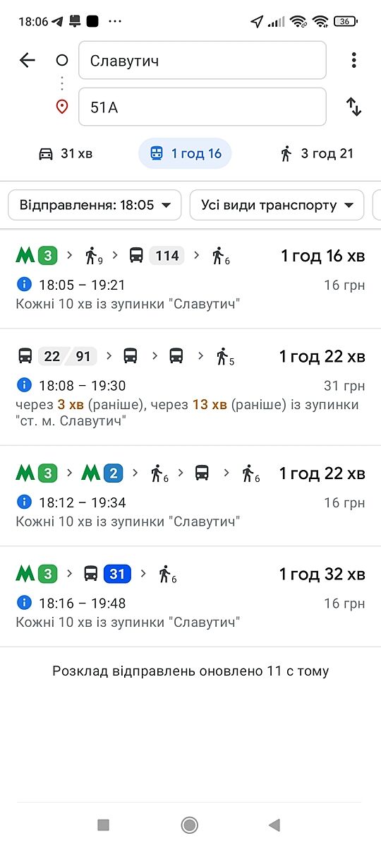 Ну так під самі двері не їде, 6 хв пройтись. Що не так? Не подобається, виберіть інший маршрут з запропонованих. На Eway перегляньте маршрут транспорту якщо сумніваєтесь