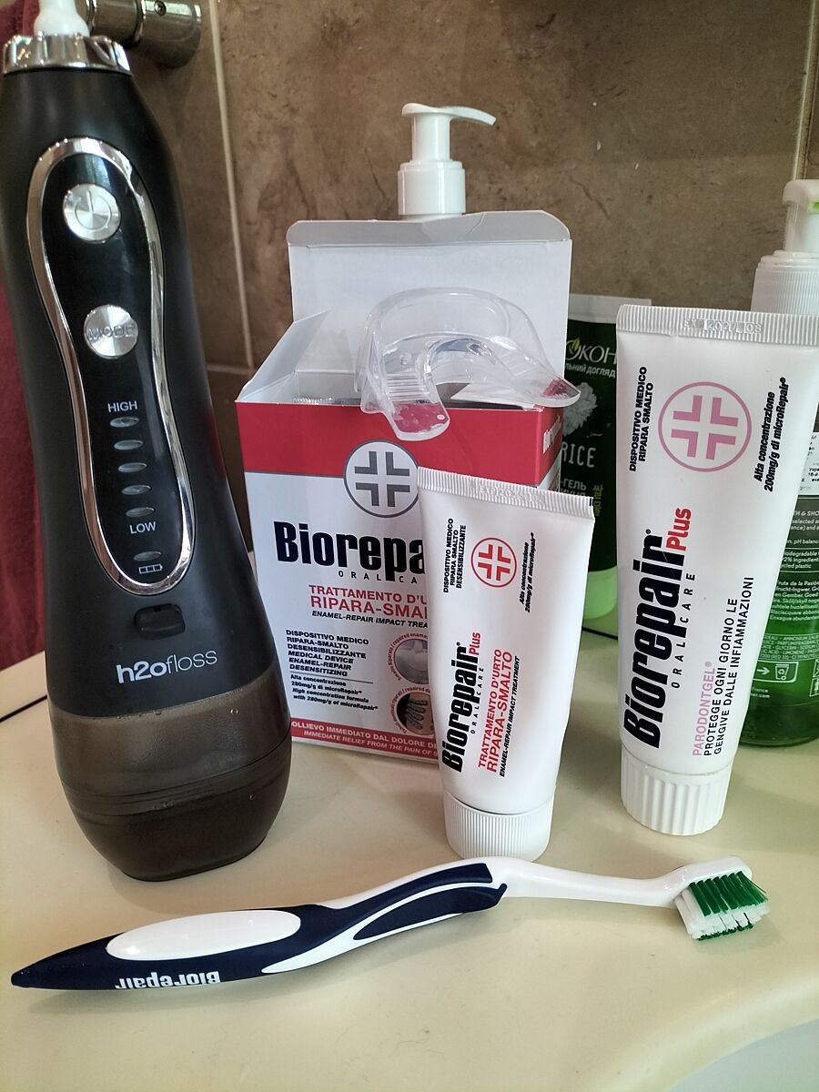 Да, верно. Мужу первым делом сделали чистку зубов. Всё, что на фото - это домашних уход.