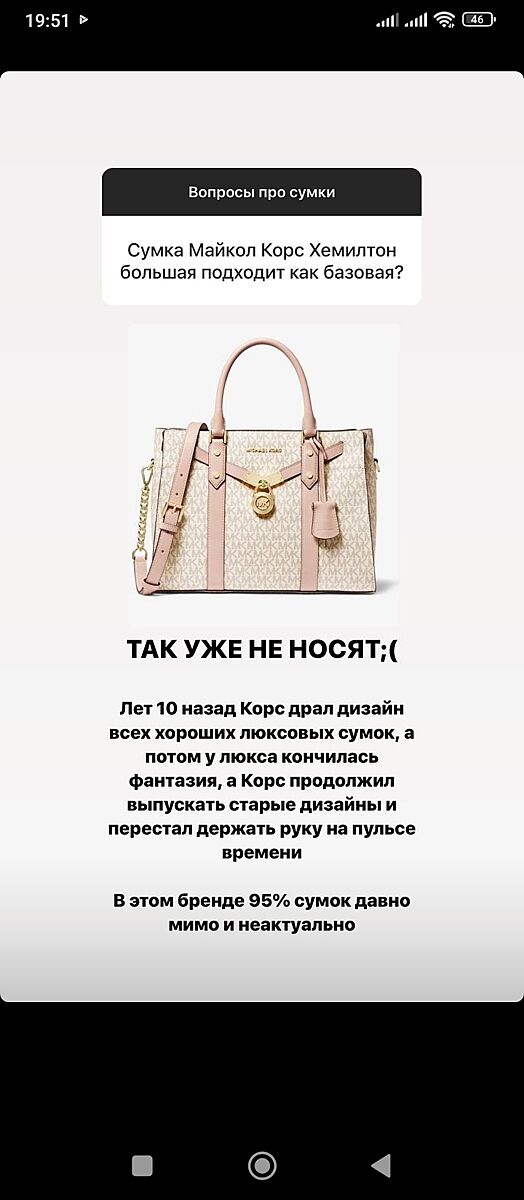 Есть такое мнение, насчёт устаревших сумок. Что скажете?