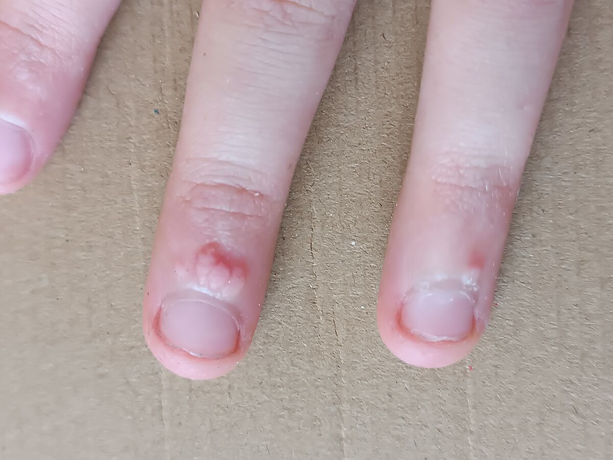 В доньки з´явилось таке на пальцях однієї руки, і на долоні. На пальцях таке як нарости трішки шершаві тверді,при надавлювані рідини з них немає , рука ліва( доня права). Що це може бути ? До лікарів попасти дуже важко .