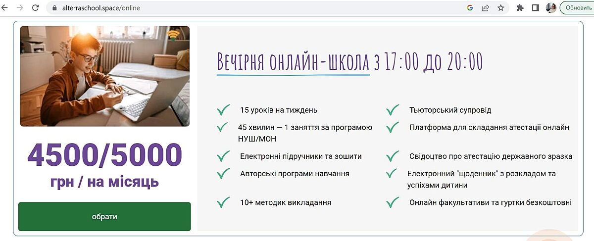Це варіант з реальними онлайн-уроками такий дорогий. Все інше там дешевше.