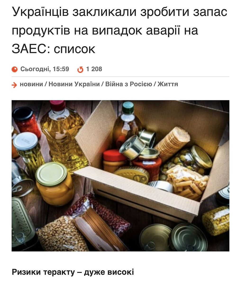 Завтра купим воду только. Я так запасы с начала войны есть всегда. Хлебцы, снеки, тушенка, мивина, паштеты и тунец в количестве примерно на неделю. Корм коту запасом на месяц всегда, но у нас лечебный поэтому чтобы не было перебоев , иногда пропадает из продажи.