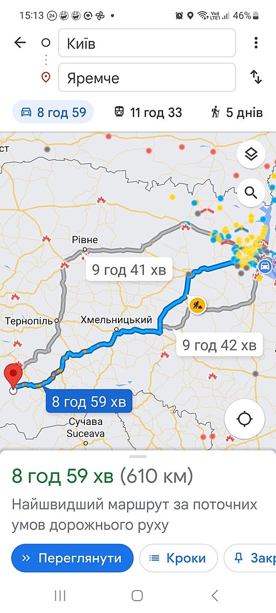 Їхали з Києва через Житомир і Рівне. Там дорога хороша. Але далі, ближче до окружної Львова, були ділянки з одностороннім рухом і за багатьма фурами. Ми виїжджали в 5 ранку і в обід вже були в Рівному.