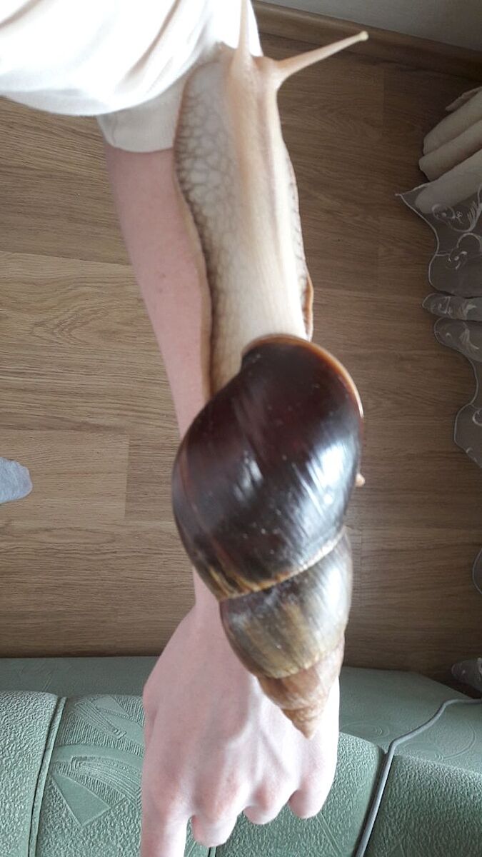 Да я тоже не ожидала, я ее взяла у девочки на местном форуме, она была размером с речную улитку, сантиметра 2. Ну я думала может до 10 вырастет и всё, как ее родители. А оно вон что получилось